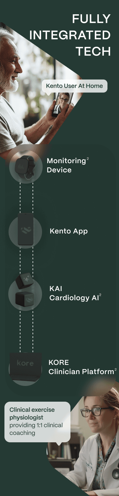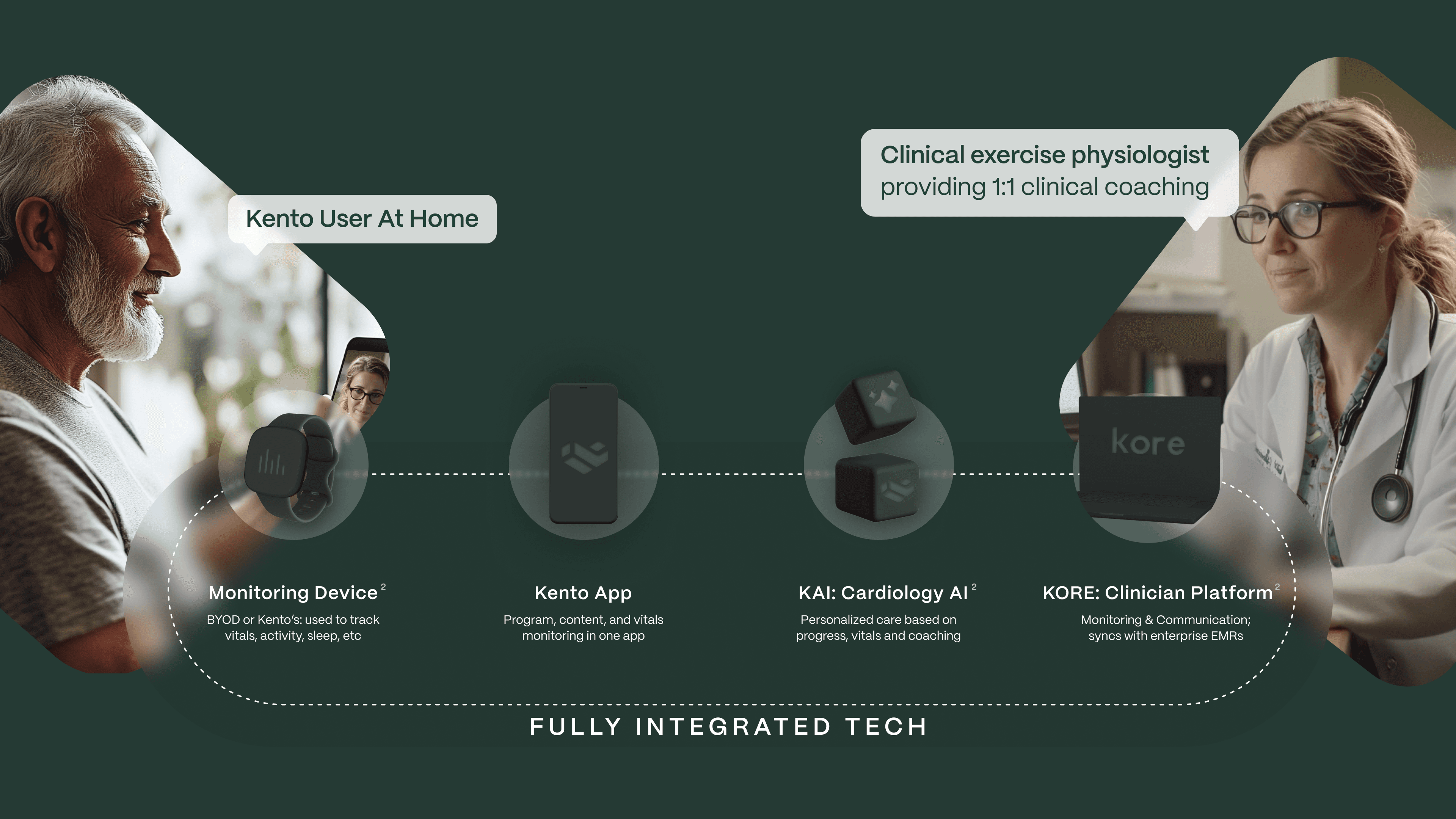 3 The Kento platform is intended to support wellness and health education. It is not intended to diagnose, treat, cure, or prevent any disease. Features such as monitoring, coaching, and personalization are designed to assist healthcare professionals and patients but do not replace medical advice or clinical decision-making. Statements have not been evaluated by the U.S. Food and Drug Administration.