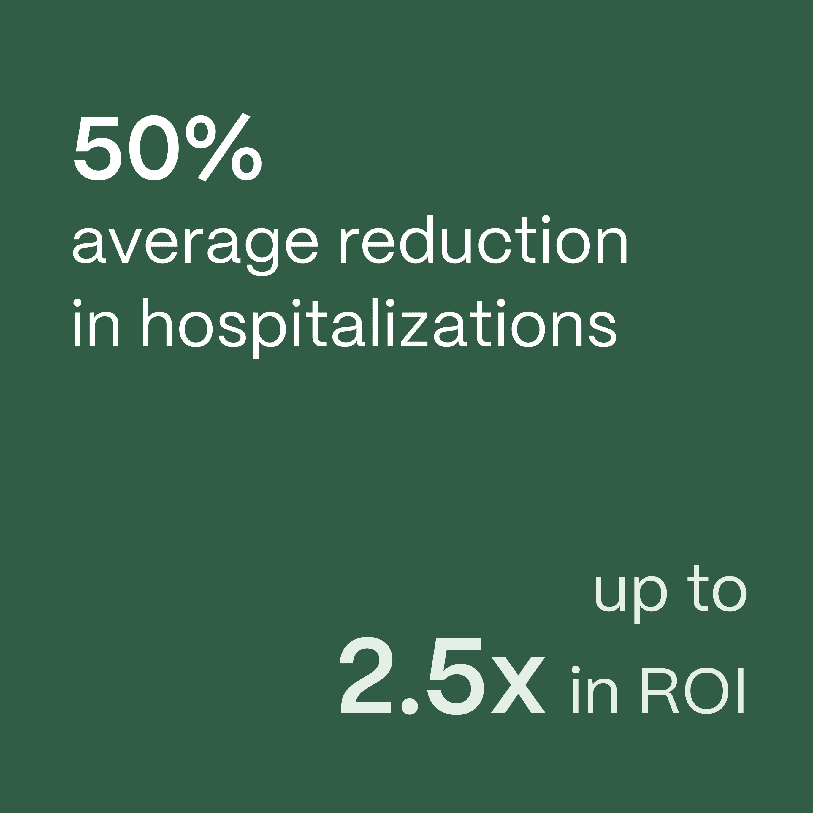 4 Statements reflect results from internal analyses and early findings from clinical partnerships. Outcomes such as cost reduction, satisfaction, or engagement are based on limited sample sizes and specific implementations. Results are not guaranteed and may vary. These statements have not been evaluated by the U.S. Food and Drug Administration and are not intended to diagnose, treat, cure, or prevent any disease.